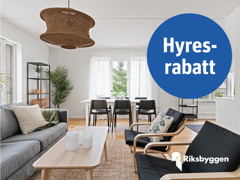 Hyresrabatt – totalt upp till 27.000 kr första året 3.000 kr rabatt/månad under månaderna 1–6 1.500 kr rabatt/månad under månaderna 7–12 Ordinarie hyra visas i annonsen I hyran ingår värme, kallvatten och TV med Digitalt Startutbud från Tele2 f.d. Comhem. Varmvatten mäts individuellt via IMD (individuell mätning och debitering) och debitering sker till dig som hyresgäst utifrån förbrukning. Här tecknar du eget abonnemang för el, bredband och telefoni och ev. utökat TV-utbud hos Tele2. Möjlighet finns att hyra parkering utomhus. Gavellägenhet med balkong och fint ljusinsläpp Bra disponerad 2: a med fint hörnläge och balkong. Modernt kök från Vedum med vita luckor, grå laminatbänkskiva, rostfri diskbänk och vitt kakel ovan arbetsbänk. Vita vitvaror från Electrolux; diskmaskin, glaskeramikhäll och kyl/frys. Genomgående mattlackerad ekparkett och vitmålade väggar. Helkaklat badrum med dusch. Sovrum med ingång via skjutdörrar och helkaklat badrum med dusch. Gemensam tvättstuga finns i källaren. Gott om förvaring samt eget källarförråd. Ett bekymmersfritt boende med hiss och vacker utsikt mot naturen. I Fredriksberg intill rofyllda Råbyskogen har vi byggt tre hus med 120 lägenheter med naturen utanför dörren och med närhet till mataffär. Tillgång till gemensamma ytor mellan husen med sittplatser och grill för avkoppling och gemenskap samt lekyta för de små. Runt hörnet har du fotbollsplan, mötesplatser och ett bra vägnät för cykel, bil och buss.